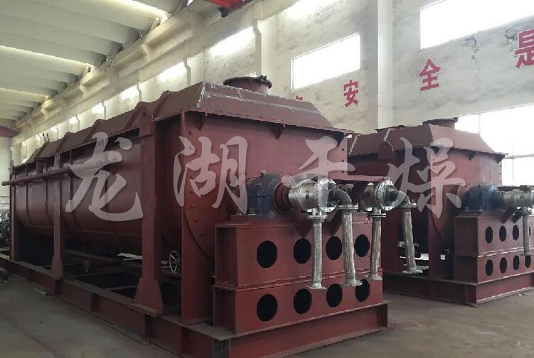 空心軸上密集排列著楔型中空漿葉,熱介質(zhì)經(jīng)空心軸流經(jīng)漿葉。單位有效容積內(nèi)傳熱面積很大,熱介質(zhì)溫度從-40℃到320℃,可以是水蒸汽,也可以是液體型:如熱水、導(dǎo)熱油等。間接傳導(dǎo)加熱,沒(méi)有攜帶空氣帶走熱量,熱量均用來(lái)加熱物料。熱量損失僅為通過(guò)器體保溫層向環(huán)境的散熱。楔型漿葉傳熱面具有自清潔功能。物料顆粒與楔型面的相對(duì)運(yùn)動(dòng)產(chǎn)生洗刷作用,能夠洗刷掉楔型面上附著物料,使運(yùn)轉(zhuǎn)中一直保持著清潔的傳熱面。漿葉干燥機(jī)的殼體為Ω型,殼體內(nèi)一般安排二到四根空心攪拌軸。殼體有密封端蓋與上蓋,防止物料粉塵外泄而充分發(fā)揮作用。