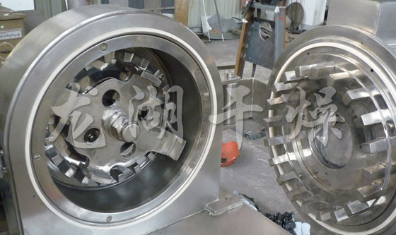 本機(jī)的工作原理是物料進(jìn)入粉碎室,在高速旋轉(zhuǎn)的活動(dòng)齒盤與固定齒盤間受齒的沖擊、剪切、磨擦及物料間的相互撞擊的作用下被粉碎,經(jīng)篩網(wǎng)篩選后即成為所需的粉料。
